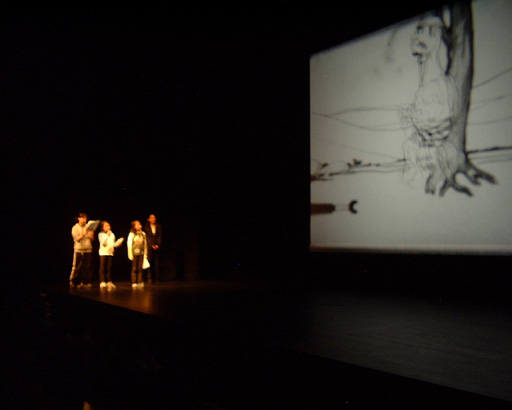 ▼演目は漫画映画『桃太郎』と『一寸法師』。佐々木先生の活弁で見入ります。